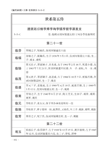 临芳 萃荘之子,配丁氏,住剅河镇董庄村,生一子:观银