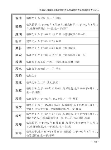 观明 临祥长子,配王氏,生四子:泽洲、泽培、泽林、泽洪