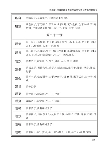 观炎 临庄长子,名焕章,生于 1914 年 7 月 7 日,配王玉珍,生于 1911 年 3