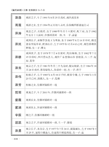泽勇 观荣长子,名北京,生于 1977年 7月 24日,配陆丽红,生于 1983年 3