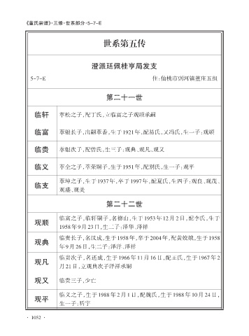 临义 萃全之子,萃荣嗣子,生于1951年,配别氏,生一子:观平