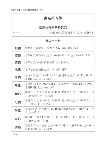 临福 萃柏之子,又名福堂,生于 1956 年 7 月 26 日,配张姣枝,生于 1958