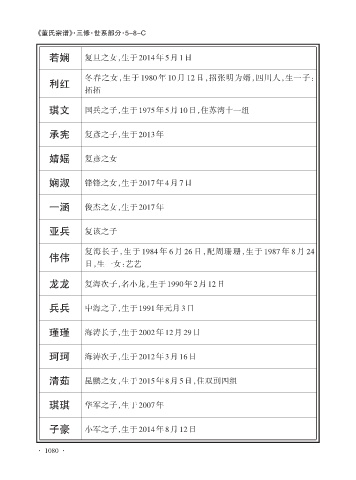 伟伟 复海长子,生于 1984 年 6 月 26 日,配周珊珊,生于 1987 年 8 月 24