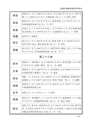 泽平 观舫长子,观恒嗣子,生于 1964 年 5 月 18 日,配李佑慧,生于 1967