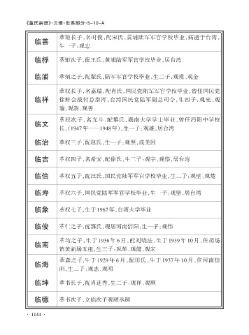 临桴 萃矩次子,配王氏,黄埔陆军军官学校毕业,居台湾