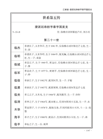 临俊 萃新长子,生于1982年,配刘何芳,生一子:子聪