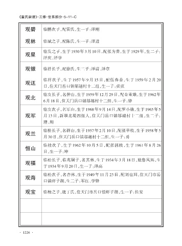 观碧 临鹏次子,配雷氏,生一子:泽刚