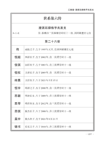 恒超 国祥长子,生于2002年,住三伏潭官岭十一组