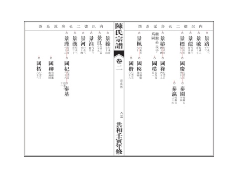 六十二 行芳百 叔爲嗣 出繼胞 三十八 行芳百 六十六 行芳百 爲嗣 出繼伯 廿一 行芳百 四十九 行芳百 四十六 行芳百