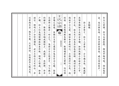 以骨肉至亲,祗为斗粟,尺布诉讼,公庭此其人既无良。 同宗,则鸣之户分听其调处,必万不得已方可经公,若 户婚,田土以及钱债细故如系外姓,则鸣之邻戚,如系 约嗣后,惟祖父茔域或被侵占,或被夺 岂谚所云能忍一时之气,免得百日之忧者乎,今与族人 旁观之论说,负则以父母之遗体不免受官司之痛,惩此 经庭 役而平日之爱,则如命者此时已,不得泥沙叶之矣,迨 争之不足,而且至于讼及其讼也请讼师,邀词证布置胥 其邻里倘知自反何有争端,如因夙怨小忿而必与之争, 证,见以图鱼肉,乡里亦即其事也,戒之母站家声。 多又人皆谨,厚当无虑此然,闻充甲保叫唆,祠讼包作