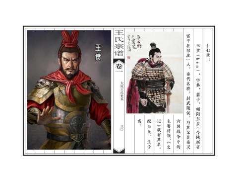 ൦ሷ௶ 富平县东北 王贲( 十七世: 人,秦代名将,封武陵侯,与其父是秦灭 卷一 ) bēn ),字典,翦子,频阳东乡 太原王氏世系 离。 配吕氏,生子 记》载有其名。 主要将领,《史 六国战争中的 三〇 今陕西省 (