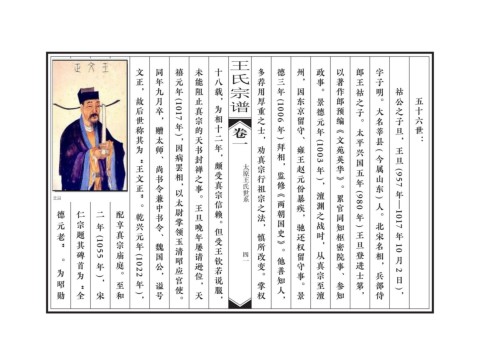 文正,故后世称其为 同年九月卒,赠太师、尚书令兼中书令、魏国公,谥号 禧元年 未能阻止真宗的天书封禅之事。王旦晚年屡请逊位,天 十八载,为相十二年,颇受真宗信赖。但受王钦若说服, 多荐用厚重之士,劝真宗行祖宗之法,慎所改变。掌权 德三年 州,因东京留守、雍王赵元份暴疾,驰还权留守事。景 政事。景德元年 以著作郎预编《文苑英华》。累官同知枢密院事、参知 郎王祜之子。太平兴国五年 字子明。大名莘县