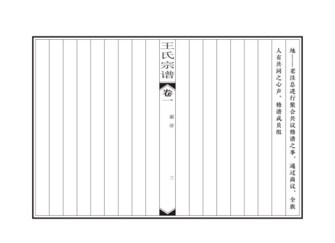 ൦ሷ௶ 人有共同之心声。修谱成员组 地 老洼总进行聚会共议修谱之事,通过商议,全族 —— 卷一 前 序 三