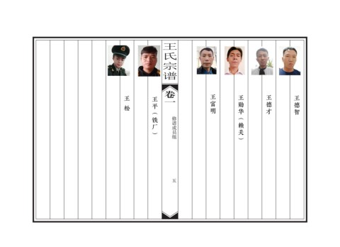 ൦ሷ௶ 卷一 王 王平(铁厂) 王富明 王勋华(赖关) 王德才 王德智 松 修谱成员组 五