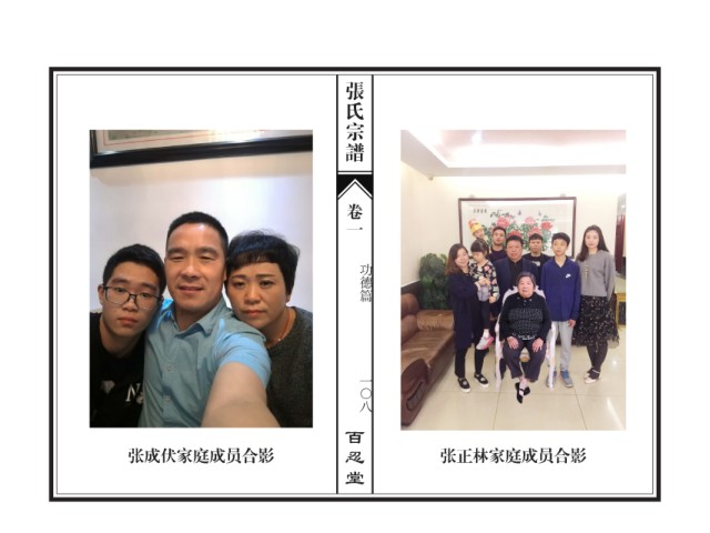 张氏宗谱 卷一 功德篇 一〇八 百忍堂 张成伏家庭成员合影 张正林家庭成员合影