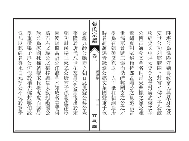 低几以聽經名尊東白元楨公不愧於登學 學重橫渠子厚公何愧於稱先儒封郿伯設 說公爲家國棟樑遞觀宋代擁虎皮而講易 萬石君文瓘公之橋梓顯貴大勳封燕國公 圖凌烟閣萬福公江淮草木知威名美譽稱 朝功封漢陽王柬之公唐室子孫蒙德澤形 第隆於唐代八世孝友昌宗公猶復出於宋 金鑑九齡公勵節立朝百忍風聲公藝公豈 時名高萬選青錢鷟公懿文華國聲重千秋 學爲在朝碩彥克以一人而砥柱朝綱迨唐 世儒宗會號三張而鼎峙邦國玄之公之才 龍繡虎詞賦絕倫侍郎孟陽公之昆弟爲當 公博古通今文章名世爲東曹椽之翰公雕 吹經史文中拜太史令及晉封廣武侯之華 安世公功列麒麟閣上封富平侯平子公鼓 畔堪公爲漁陽守勸農致富民興桑麻之歌