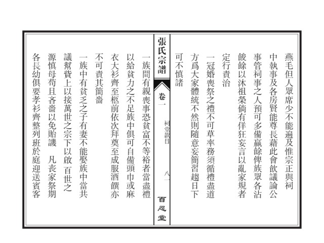 各長幼俱要孝衫齊整列班於庭迎送賓客 源慎母苟且吝嗇以免貽譏 議幫貲上以接萬世之宗下以啟 一族中有貧乏之子有妻不能娶族中當共 不可責其簡嗇 衣大衫齊至柩前依次拜奠至成服酒饌亦 以給貧力之不足族中俱可自備頭巾或麻 一族間有親喪事恐貧富不等裕者當盡禮 可不慎諸 方爲大家體統不然則隨意妄簡習趨日下 一冠婚喪祭之禮不可草率務須循禮盡道 定行責治 餕餘以沐祖榮倘有佯狂妄言以亂家規者 事管祠事之人預可多備贏餘俾族眾各沾 中執事及各房賢能尊長藉此會飲議論公 燕毛但人眾席少不能遍及惟宗正與祠