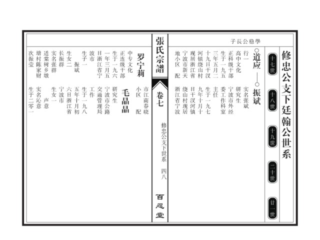 次振莹 塘村陈家财 适棠树乡墩 实名张群 长振群 生女二 生子一 波市 日浙江省宁 一年三月五 生于一九六 正连级干部 中专文化 罗宁莉 地小区 宁波市新天 现居浙江省 河镇绕山村 十九日干汊 三年五月二 生于一九五 正科级干部 高中文化 行一 道应 修忠公支下廷翰公世系