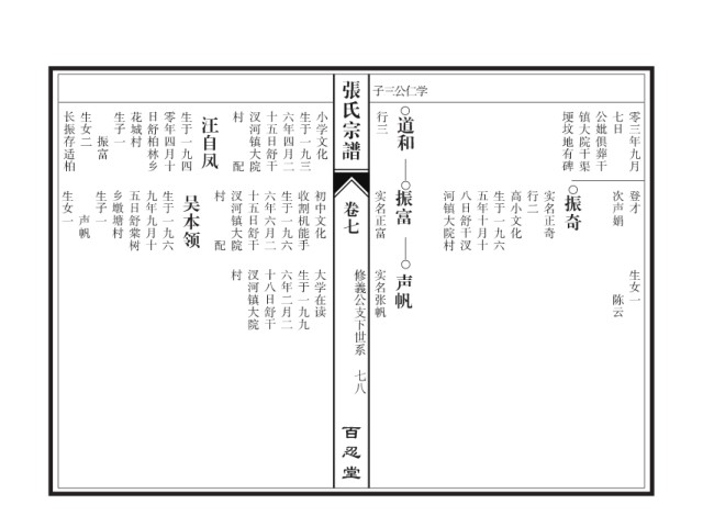 村 汊河镇大院 十八日舒干 六年二月二 生于一九九 大学在读 修義公支下世系 实名张帆 声帆 生女一