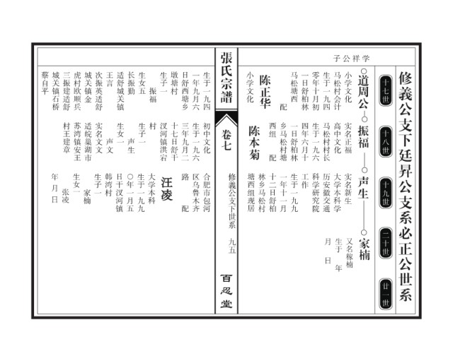 蔡自平 城关镇石桥 三振建适舒 虎村欧顺兵 城关镇金 次振英适舒 王言 适舒城关镇 长振勤 生女五 生子一 墩塘村 日舒西塘乡 一年九月六 生于一九四 小学文化 陈正华 马松塘西 一日舒柏林 零年十月初 生于一九四 马松村会计 小学文化 道周公 修義公支下廷昇公支系必正公世系