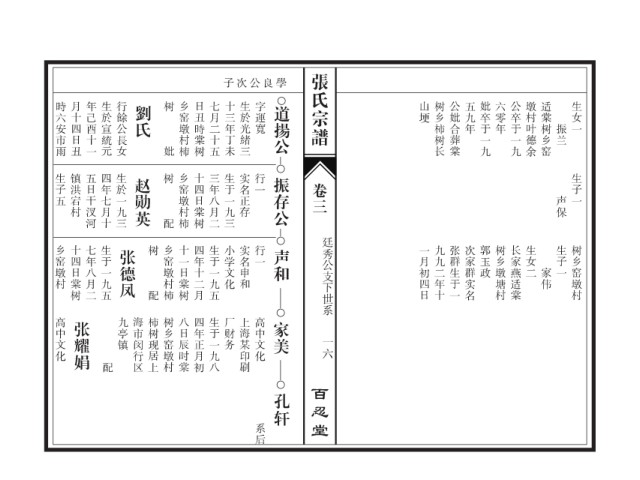 生子五 镇洪宕村 五日干汊河 四年七月十 生於一九三 赵勋英 树 乡窑墩村柿 十四日棠树 三年八月二 生于一九三 实名正存 行一 振存公 生子一