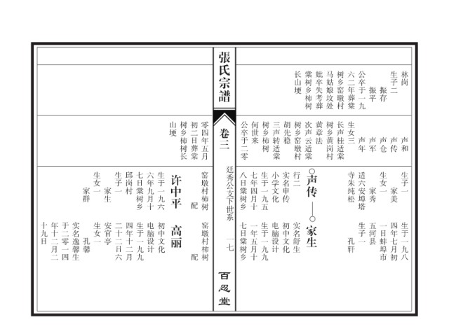 生女一 生子一 邱岗村 七日棠树乡 六年九月十 生于一九六 许中平 窑墩村柿树 八日棠树乡 七年四月十 生于一九五 小学文化 实名申传 行二 声传 寺朱纯松 适六安埠塔 生女一 生子一