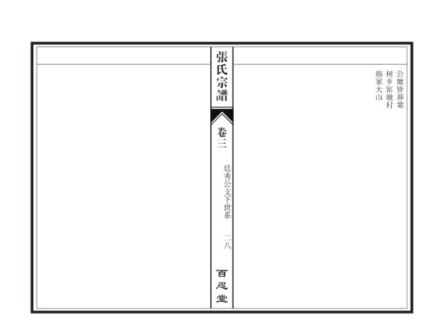 张氏宗谱 韩家大山 树乡窑墩村 公妣皆葬棠 卷三 廷秀公支下世系 二八 百忍堂