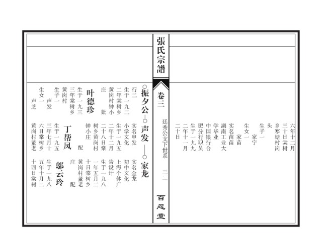 生女一 生子一 黄岗村 三年棠树乡 生于一九三 叶德珍 庄 黄岗村钟小 二年棠树乡 生于一九二 行二 振夕公