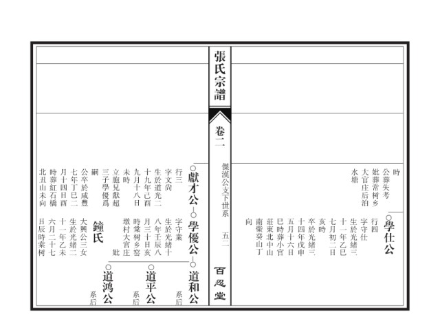 北丑山未向 時葬紅石橋 月十四日酉 七年丁巳二 公卒於咸豐 嗣 三子學優爲 立胞兄獻超 未時 九月十八日 十九年己酉 生於道光二 字文尙 行三 獻才公 水塘 大官庄后泊 妣葬常树乡 公葬失考 時