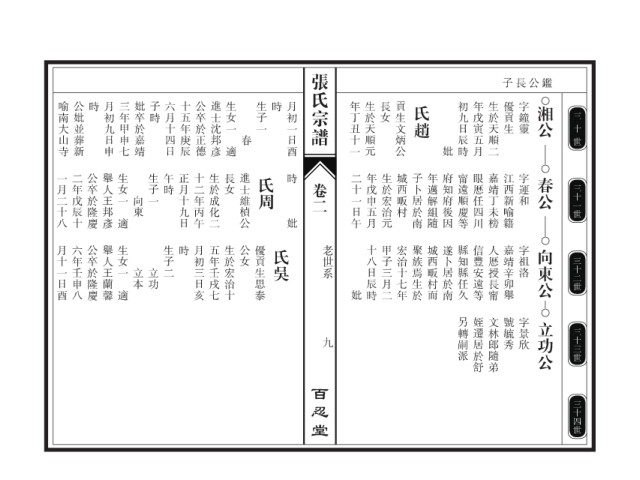 月十一日酉 六年壬申八 公卒於隆慶 舉人王蘭馨 生女一 生子二 時 月初三日亥 五年壬戌七 生於宏治十 公女 優貢生思泰 氏吳 老世系 十八日辰時 甲子三月二 宏治十七年 聚族焉生於 城西畈村而 遂卜居於南 縣知縣任久 信豐安遠等 人厯授長甯 嘉靖辛卯舉 字祖洛 向東公