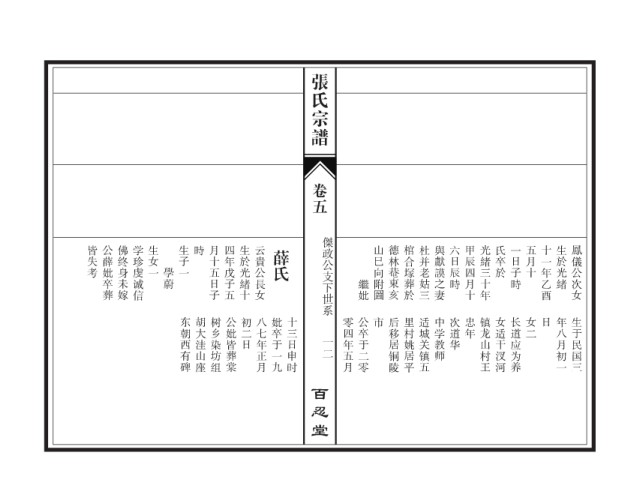 皆失考 公薛妣卒葬 佛终身未嫁 学珍虔诚信 生女一 生子一 時 月十五日子 四年戊子五 生於光緒十 云貴公長女 薛氏 山巳向附圖 德林 棺合塜葬於 杜并老姑三 與獻謨之妻 六日辰時 甲辰四月十 光緒三十年 氏卒於 一日子時 五月十 十一年乙酉 生於光緒 鳳儀公次女