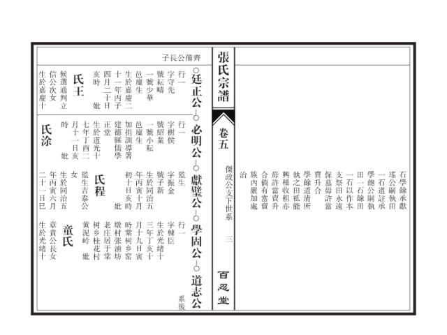 氏涂 時 月十一日亥 七年丁酉二 生於道光十 正堂 建德縣儒學 加捐訓導署 邑廩生 一號小耘 號紹業 字樹侯 行一 必明公