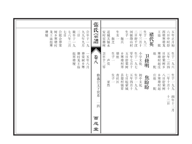 塘埂 龙王庙组寒 树乡寒塘村 公妣合葬棠 七日 七六年二月 妣卒于一九 三日 九九年九月 公卒于一九 安村宋德树 适城关镇永 生女一 生子一 河镇绕山村 二日舒干汊 二年三月十 生于一九三 禇代英 王庙 西塘寒塘龙 六日申时舒 五年正月初