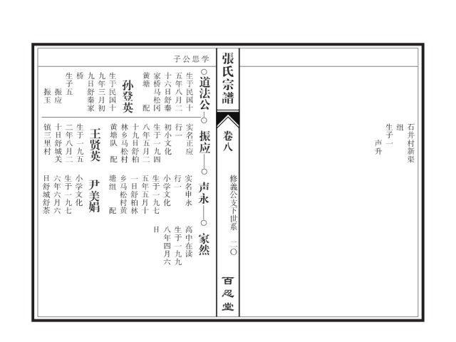 日舒城舒茶 六年六月六 生于一九七 小学文化 尹美娟 塘组 乡马松村黄 一日舒柏林 五年五月十 生于一九七 小学文化 行一 实名申永 声永 修義公支下世系