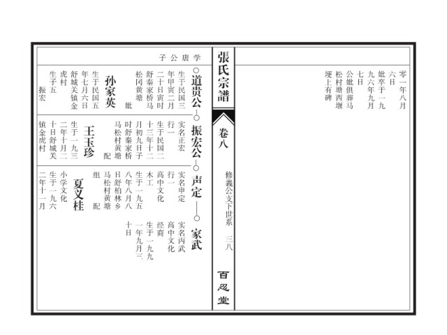 镇金虎村 十日舒城关 二年十月二 生于一九三 王玉珍 马松村黄塘 时舒秦家桥 月初九日子 十三年十二 生于民国二 行一 实名正宏 振宏公 卷八
