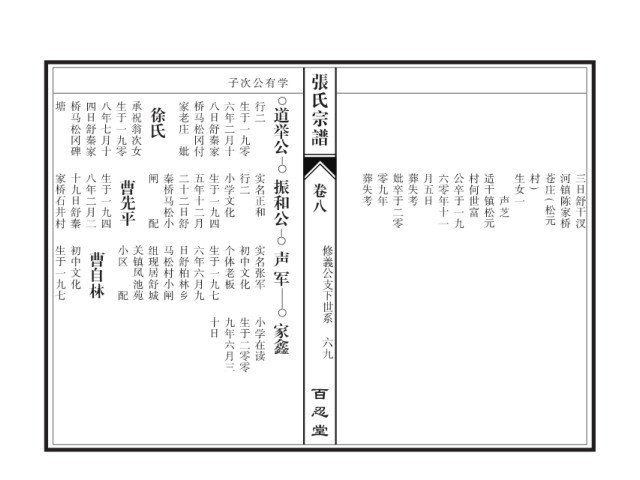 生于一九七 初中文化 曹自林 小区 关镇凤池苑 组现居舒城 马松村小闸 日舒柏林乡 六年六月九 生于一九七 个体老板 初中文化 实名张军 声 修義公支下世系