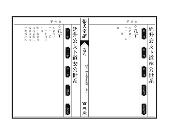 张氏宗谱 子俊家 子林家 兰春天小区 省嘉兴市格 市现居浙江 浙江省嘉兴 十日 三年七月三 生于二零一 实名帮宇 廷升公支下道宏公世系 日 生于 实名庭宇 廷升公支下道林公世系 孔宇 廿一世 孔宇 廿一世 月 年 廿二世 卷八 廿二世 廷升公支下世系 廿三世 廿三世 廿四世 廿四世 七九 百忍堂 廿五世 廿五世