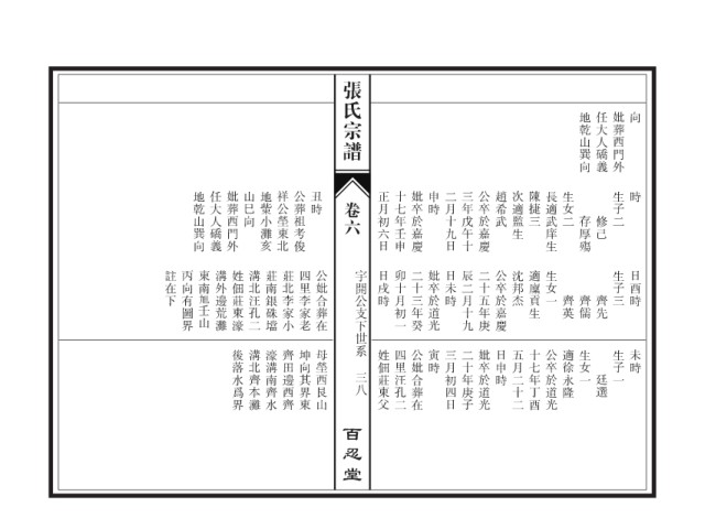 註在下 丙向有圖界 東南 溝外邊荒灘 姓佃莊東濠 溝北汪孔二 莊南銀硃壋 莊北李家小 四里李家老 公妣合葬在 宇開公支下世系 日戌時 卯十月初一 二十三年癸 妣卒於道光 日未時 辰二月十九 二十五年庚 公卒於嘉慶 沈邦杰 適廩貢生 生女一 生子三 日酉時