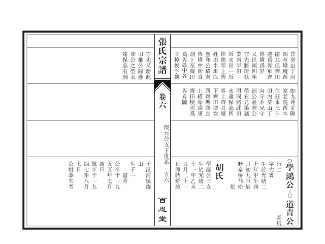 公妣葬失考 七日 四七年八月 妣卒于一九 四日 五五年七月 公卒于一九 生子一 山 干汊河镇绕 日卯時舒城 九月二十一 十一年乙未 生於光緒二 學灝公三女 胡氏 時秦桥马松 月初九日辰 十年甲午四 生於光緒二 字大賓 行二 學鴻公