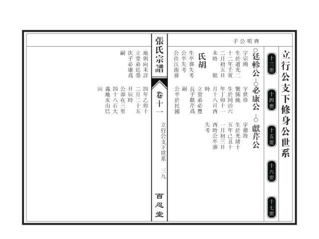 立行公支下世系 失考 酉時公卒葬 一月初三日 五年己丑十 生於光緒十 字德海 獻芹公