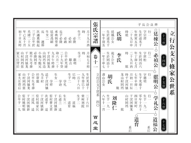 家大庄背后 山村同垱张 干汊河镇龙 公卒失考葬 经帮能 乌羊村 适干汊河镇 生女一 生子二 巳時 一月十八日 九年癸巳十 生於光緒十 立行公支下世系 壽山公女 胡氏 龙山村同垱 時干汊河镇 月初一日辰 七年辛卯二 生于光绪十 字德明 行一 獻明公