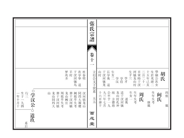 罗兆圣 羊村 干汊河镇乌 次学华 杜春明 立行公支下世系 山村 干汊河镇龙 长学英 生女二 学才 生子三 河镇龙山村 日寅時干汊 二月二十一 十五年己亥 生於光緒二 學餘公次女 胡氏