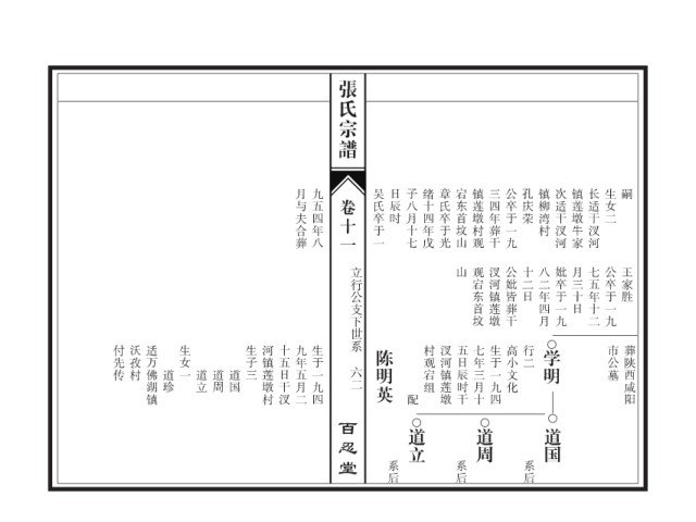 付先传 沃孜村 适万佛湖镇 生女一 生子三 河镇莲墩村 十五日干汊 九年五月二 生于一九四 陈明英 村观宕组 汊河镇莲墩 五日辰时干 七年三月十 生于一九四 高小文化 行二 学明 市公墓 葬陕西咸阳