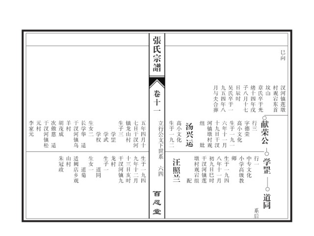 李家元 元村 干汊河镇松 次傲慈 胡茂成 羊村 干汊河镇乌 长学华 生女二 生子三 镇龙山村 七日干汊河 五年四月十 立行公支下世系 生于一九二 高小文化 汤兴运 组 河镇墩村观 十九日干汊 六年十一月 生于一九一 高小文化 字德荣 行三 献荣公