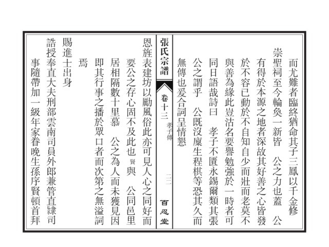 事隨帶加一級年家眷晚生孫序賢頓首拜 奉直大夫刑部雲南司員外郎兼管直 士出身 焉 即其行事之播於眾口者而次第之無溢詞 居相隔數十里慕 要公之存心固不及此也 表建坊以勵風俗此亦可見人心之同好而 無傳也爰合詞呈情懇 公之謂乎 同日語哉詩曰 與善為緣此豈沽名要譽勉強於一時者可 於不容已動於不自知自少而壯而老莫不 有得於本源之地者深故其好善之心皆發 聖祠至今輪奐一新皆 而尤難者臨終猶命其子三鳳以千金修