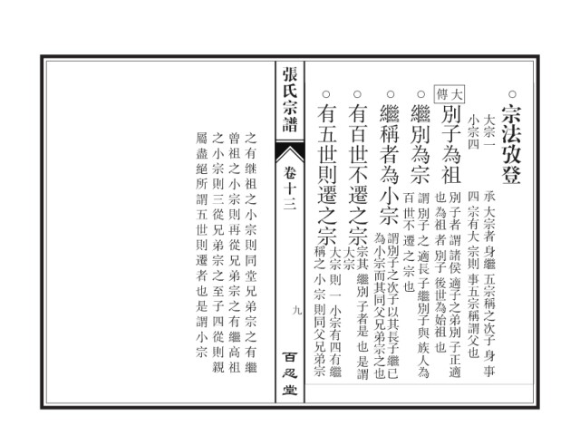 有五世則遷之宗 有百世不遷之宗 繼稱者為小宗 繼別為宗 別子為祖 宗法攷登