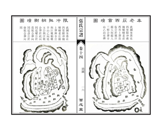 圖 墳 樹 桐 拋 冲 限 张氏宗谱 圖 墳 首 西 莊 老 本 同 徐妣合葬向 同廷彥公於 莫妣合葬向 同廷曜公於 合葬於此向 玉公與汪妣 辛山乙向廷 與汪妣柏妣 上葬齊全公 桐樹老庄前 四里限冲拋 此圖坐落在 山乙向有碑 三棺合葬辛 孺人何孺人 佐公於妣汪 西首上葬良 拋桐樹老莊 四里限冲南 此圖坐落在 卷十四 墳圖 一六 百忍堂