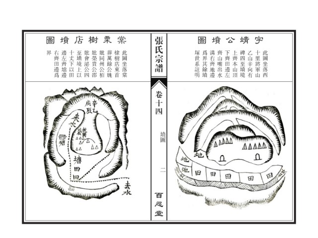 圖 墳 店 樹 栗 棠 张氏宗谱 圖 墳 公 靖 宇 界 右齊田邊爲 邊左齊壋邊 十丈下以田 至墳境上以 妣會泌公四 妣榮貴公邵 妣同州公栢 葬萬餘公姚 棣樹店東首 此圖坐落棠 塚世系註明 爲界其餘墳 溝右齊地邊 齊山嘴出水 下齊田邊左 上齊本山頂 碑四至墳境 乙山辛向有 十里將軍山 此圖坐落西 卷十四 墳圖 二 百忍堂
