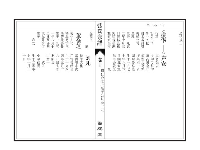 生子一 镇九井街道 二日万佛湖 一年八月十 生于一九五 高管处会计 湖北葛洲坝 初中文化 董金芝 金陵区 北省宜昌市 河镇现居湖 日舒城县梅 二年十月三 生于一九五 经理 机船公司 湖北葛洲坝 高中文化 实名正华 行三 振华 适谈成山