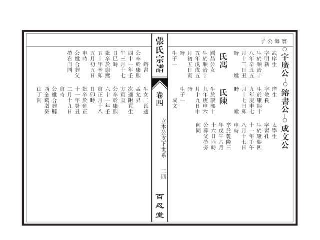 山丁向 西金鷄墩癸 公妣合葬縣 寅時 二月十九日 十一年癸丑 妣卒於雍正 日卯時 寅正月十八 六十一年壬 公卒於康熙 方寅直 次適附貢生 孟允昇 生女二長適 生子一 時 月十九日申 九年庚申六 生於康熙十 氏陳 時 月十七日卯 九年庚申七 生於康熙十 字效良 庠生 鎔書公
